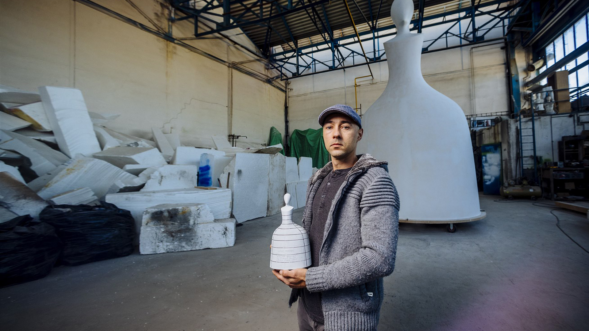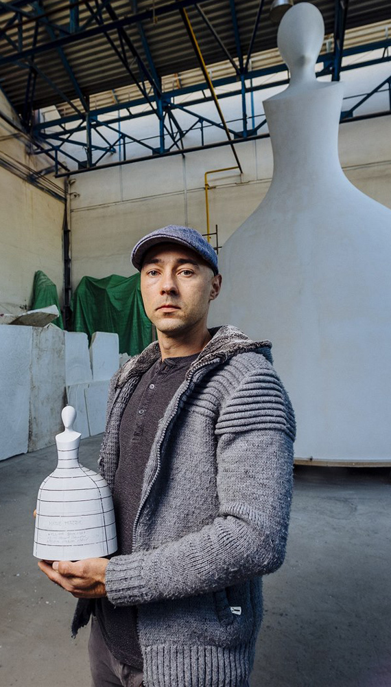 Jan Kovářík (1980) is a Czech sculptor, graduate of the Sculpture Studio at the Academy of Arts, Architecture and Design in Prague. Due to his background in ceramics, his perception of color and mass has formed since childhood. His artworks typically feature biomorphic objects based on the psychological effect of color and shape. He focuses on closed and open forms, objects shaped like mattresses and clouds, deformed objects and large-scale, formally rich installations made of combined materials. He won several competitions for the realization of sculptures in public space.
