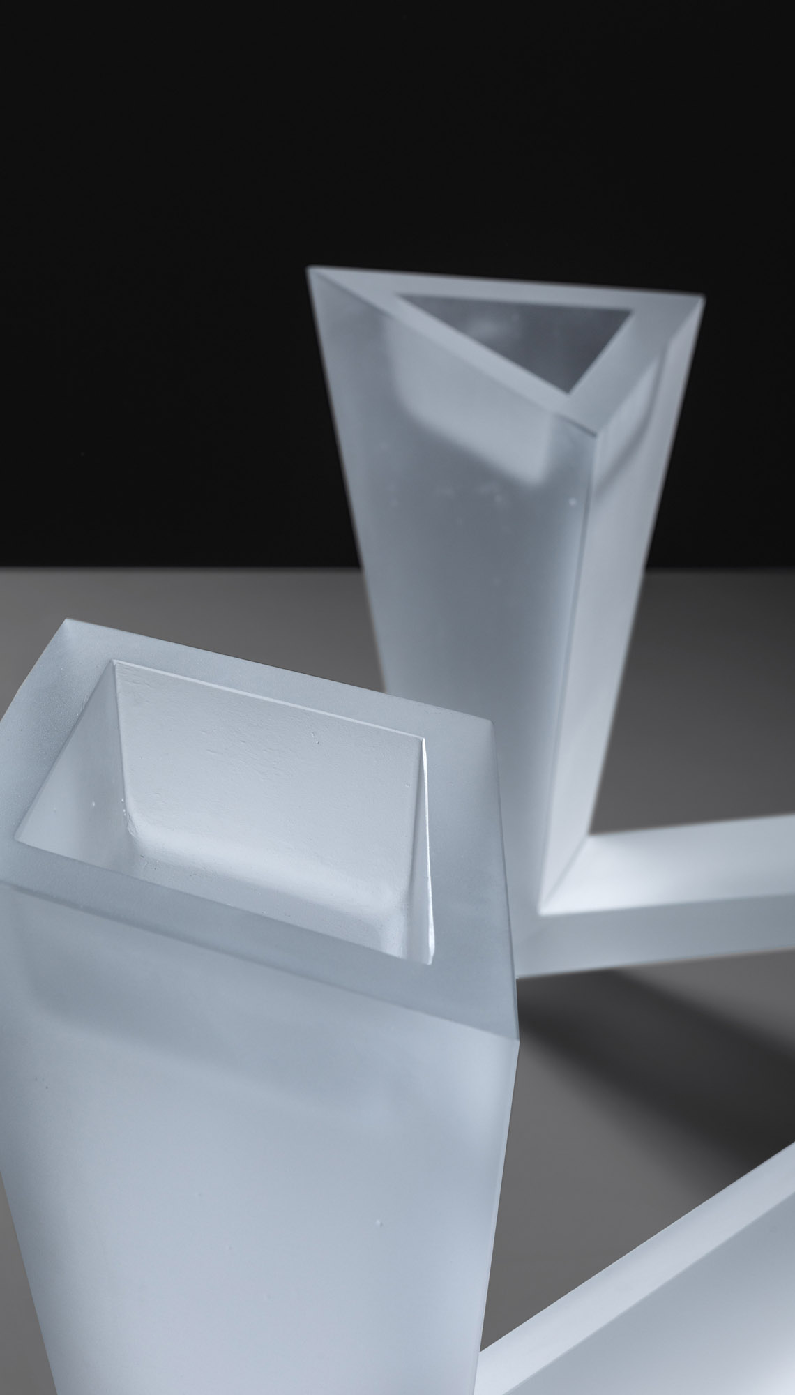 Originally designed in 1983, the object is a variant of so-called multi-vases, where the artist envisioned multiple possibilities of use as in most of his applied objects, and not an object per se. Seeking neither aesthetic surprise nor new functional variants, the artist wants to discover variants of meaning that can be related to the usual form of the object embedded in our minds. Candlestick is inspired by Czech Cubism which influenced the works of Milan Knížák in the 1970s, when he designed a furniture collection which he himself labelled as post-Cubist. The collection included visually powerful objects with sharp lines and almost aggressive look. Between 1971 and 1989, the regime in Czechoslovakia did not allow the artist to fully participate in the art market, and since he was not in touch with any glassworks and factories, he created numerous sketches and drawings of realizations in the fields of design, architecture and fashion which prove the artist’s bottomless imagination.